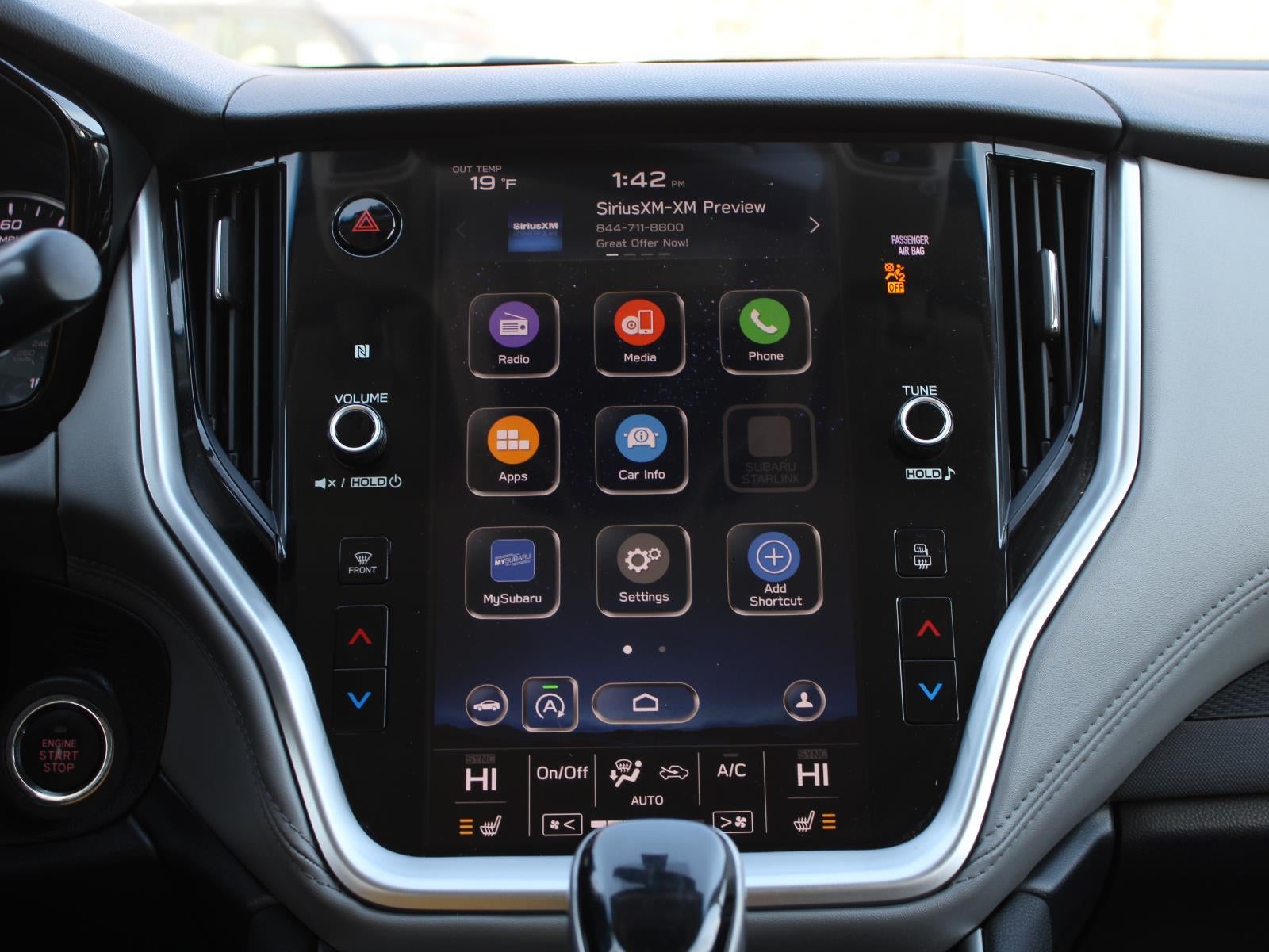 - Radio: Subaru STARLINK 11.6" Multimedia Plus Sys -inc: AM/FM stereo, HD Radio, voice activated controls, Bluetooth® audio streaming and hands-free phone connectivity w/SMS text messaging (applicable w/compatible cellphone), Near Field Communication (NFC), iPod control capability, SiriusXM All Access radio (subscription required), SiriusXM Travel Link (subscription required), smartphone integration: Android Auto, CarPlay and STARLINK cloud applications, 6 speakers, 3.5mm auxiliary input jack and dual USB input ports